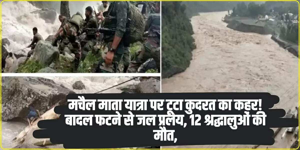 जम्मू/किश्तवाड़: जम्मू-कश्मीर के किश्तवाड़ जिले से एक बेहद दुखद और दिल दहला देने वाली खबर सामने आई है। यहां मचैल माता यात्रा पर निकले श्रद्धालुओं पर कुदरत का कहर टूट पड़ा है। यात्रा के पहले पड़ाव पड्डर सब-डिवीजन के चशोटी गांव में गुरुवार दोपहर करीब 12:30 बजे बादल फटने से भीषण बाढ़ आ गई, जिसकी चपेट में आकर अब तक 12 श्रद्धालुओं की मौत हो गई है, जबकि 25 से अधिक लोग घायल बताए जा रहे हैं। आशंका जताई जा रही है कि मरने वालों का आंकड़ा और भी बढ़ सकता है।