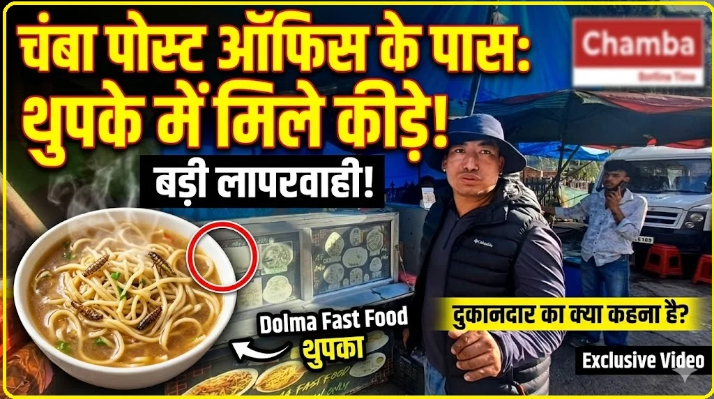 Chamba Hindi News: चंबा: जिला मुख्यालय के पोस्ट ऑफिस के समीप स्थित रेहड़ी-फड़ी संचालकों की मनमानी और स्वच्छता के प्रति लापरवाही का एक गंभीर मामला सामने आया है। यहाँ खाने-पीने की रेहड़ी-फड़ी पर लोगों के स्वास्थ्य के साथ सरेआम खिलवाड़ किया जा रहा है। ताजा मामला शनिवार का है, जब यहाँ फास्ट फूड खा रहे ग्राहकों को भोजन के अंदर कीड़े परोसे गए जिससे स्थानीय लोगों में भारी रोष है। मिली जानकारी के अनुसार शनिवार को पोस्ट ऑफिस के साथ लगती एक रेहड़ी पर कुछ ग्राहक फास्ट फूड (थुपका) खा रहे थे।