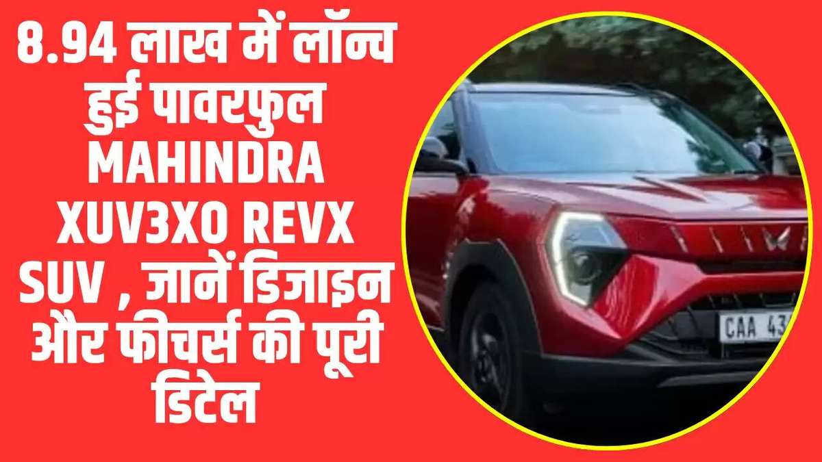 Mahindra XUV3XO REVX SUV: Mahindra ने अपनी नवीनतम SUV Mahindra XUV3XO के REVX M और REVX A संस्करणों को पेश किया है। इसकी प्रारंभिक एक्स-शोरूम कीमत 8.94 लाख रुपये है। कम्पनी ने इसे खासतौर पर भारतीय ग्राहकों की शैली और आवश्यकताओं को ध्यान में रखते हुए बनाया है, जिससे हर उम्र का व्यक्ति इससे जुड़ाव महसूस करे।