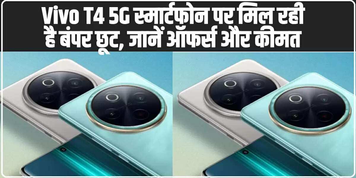 Vivo T4 5G: नई दिल्ली: स्मार्टफोन बाजार में नए फोन दिन-ब-दिन लॉन्च होते हैं। लेकिन, एक पावर-पैक्ड फोन पर बड़ा डिस्काउंट मिलना बड़ी बात होती है। लेकिन आज हम आपके लिए आज ऐसा ही एक फोन लेकर आए है। जिसमें आपको ऑनलाईन शॉपिग बेवसाईट पर भारी डिसकांउट मिलने वाला है। अगर आप भी नया फोने लेने की सोच रहे है तो आपकी यह तलाश आज में खत्म करने वाले है। क्योंकि हाल ही में बाजार में एक बेहतरीन फोन तहलका मचा रहा है। जिसमें आपको शानदार कैमरा और दमदार परफॉर्मेंस के साथ, तो Vivo T4 5G आपके लिए एक अच्छा विकल्प है। फ्लिपकार्ट पर चल रही सेल में यह फोन बहुत कम में मिल रहा है।